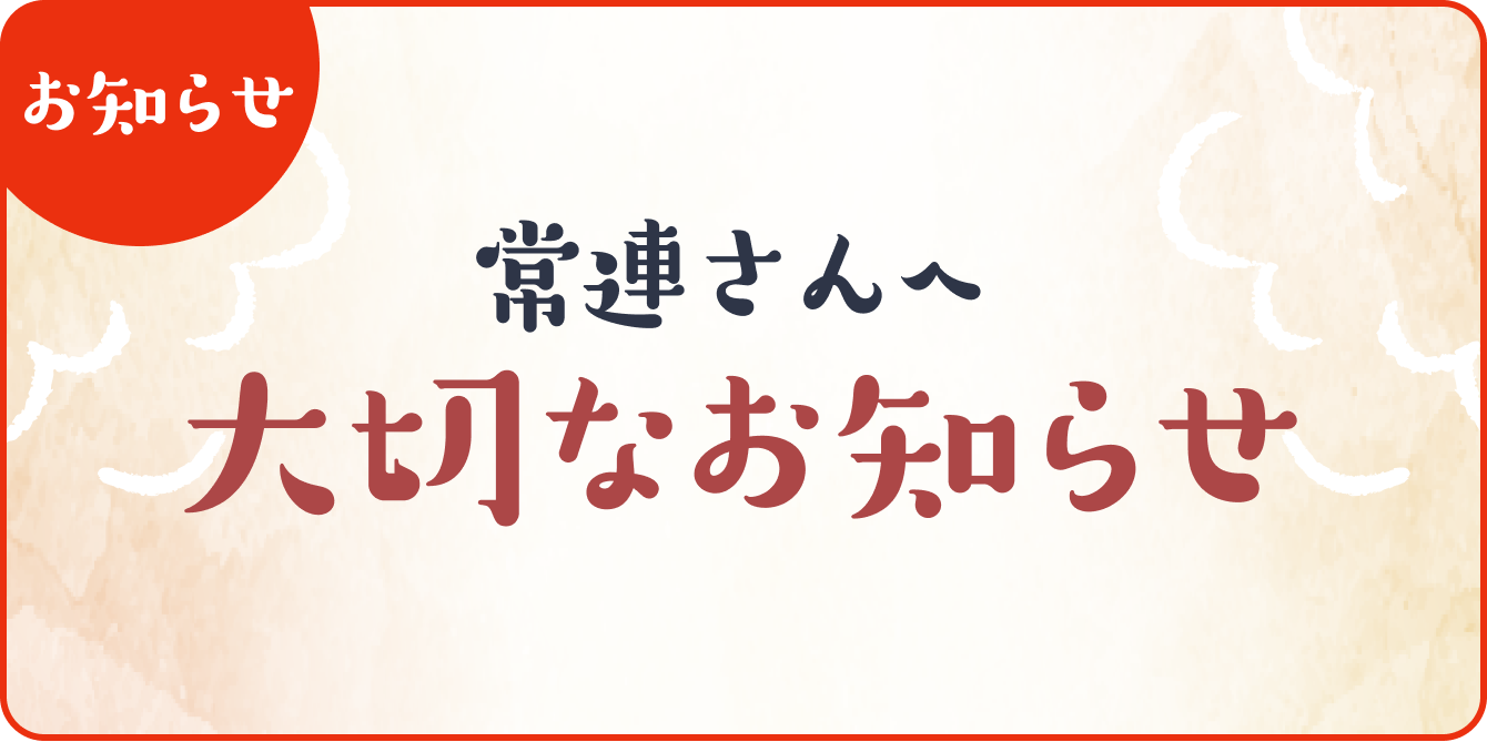 常連の皆さまには、突然のお知らせとなってしまい大変申し訳ございません。