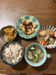 今日もナス!おかずを具沢山にした日はナスとか豆腐とかシンプルなのがあると助かる! 投稿が楽しくてここ1週間自分で味噌汁を作ってないかも笑